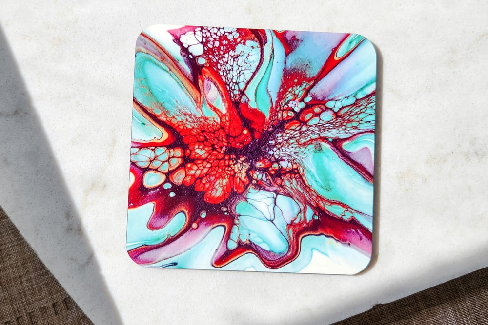 The coasters are heat and water resistant. Wipe clean with damp cloth if needed.