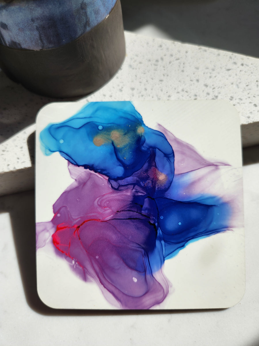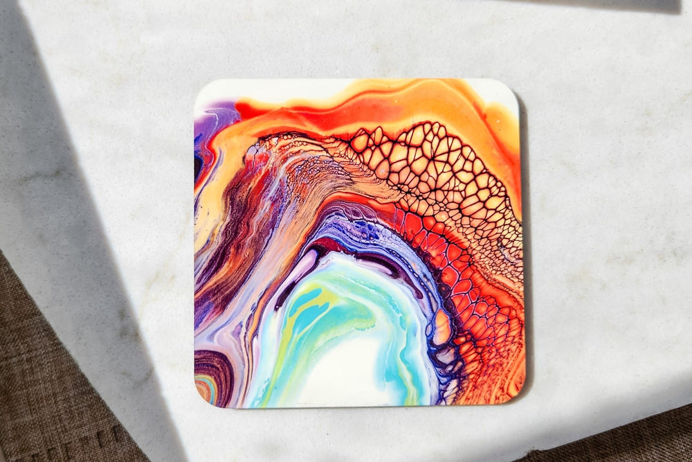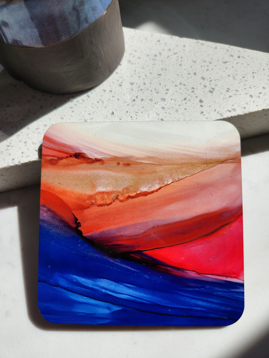 The coasters are heat and water resistant. Wipe clean with damp cloth if needed.
