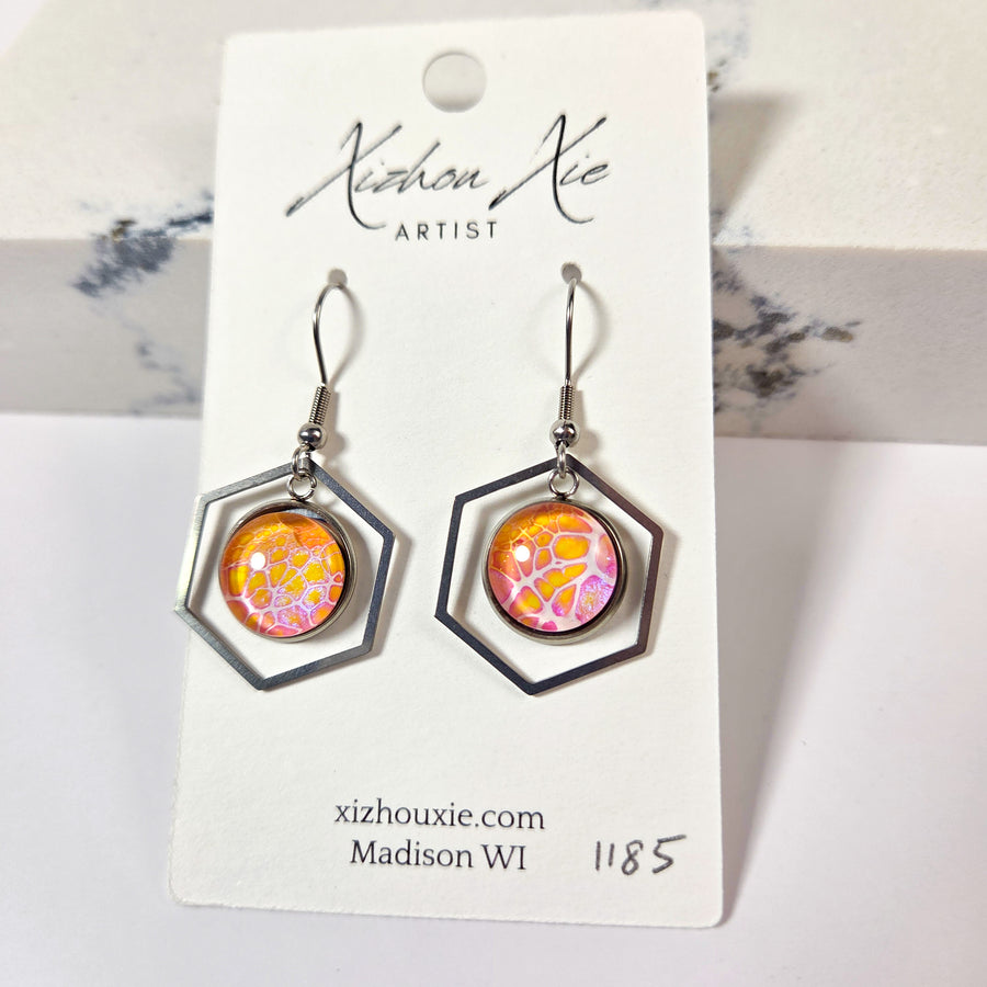 To ensure the longevity of your hand painted earrings, please avoid exposure to water, perfumes, and other harsh chemicals. Clean gently with a soft cloth when needed.
