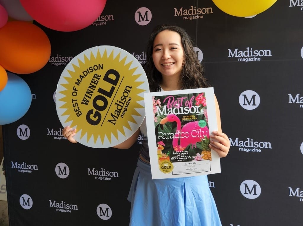 Xizhou Xie, pronounced “she-joe shieh,” is a local artist based in Madison, WI. Her art is known for its bold colors, rich textures, and dynamic designs that invite viewers to experience more than just visuals. With her studio, gallery, and home all under one roof, Xizhou believes that art should naturally fit into everyday life.